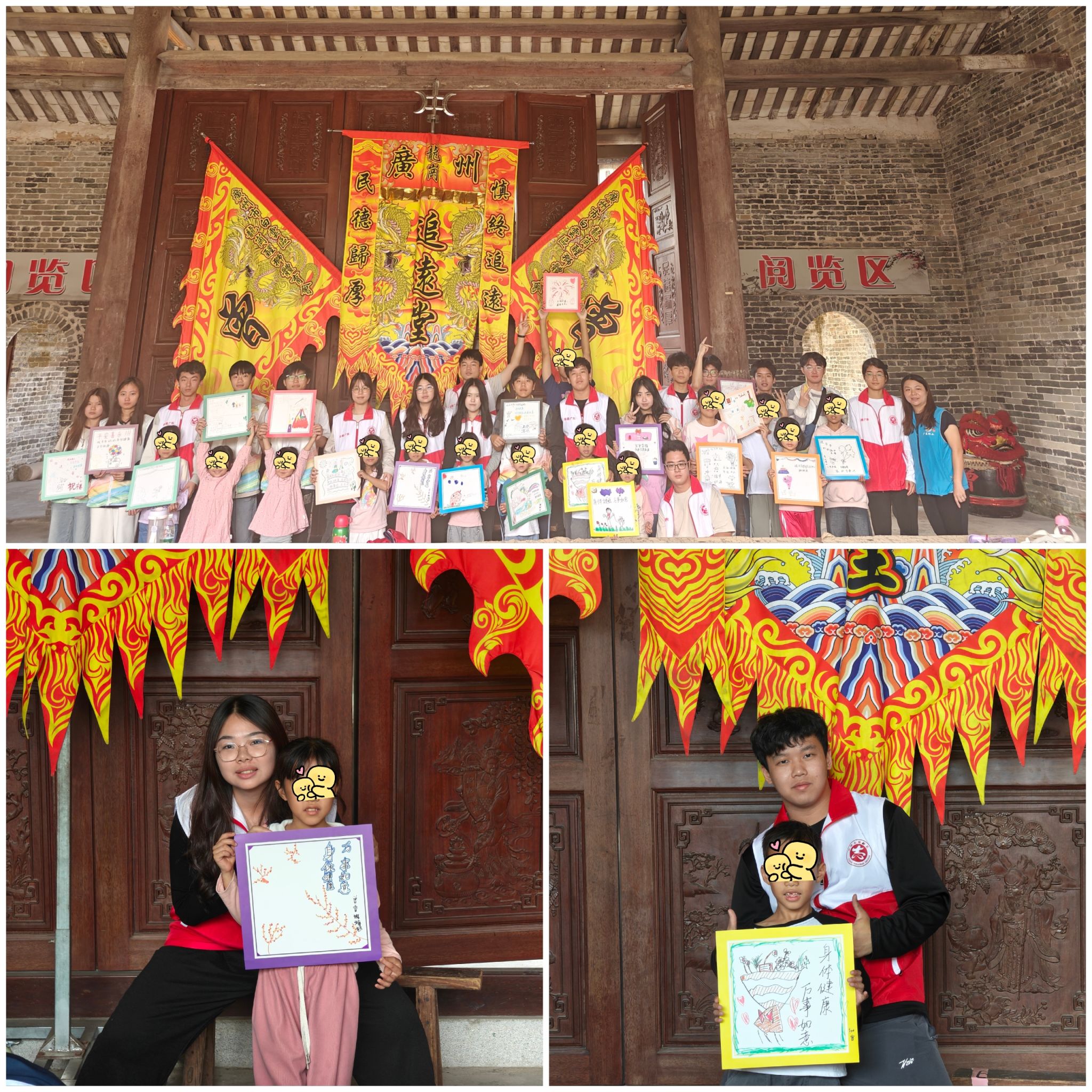 活动结束时,志愿者和小朋友们分享了自己独特而温馨的回忆,我们在祠堂门口永远定格下了这美好的时刻。
