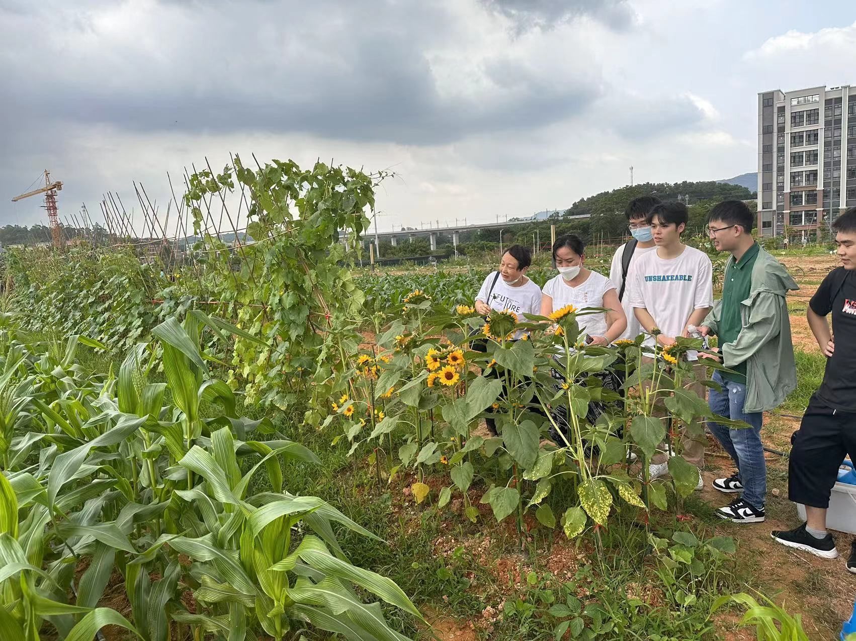 接着马稚昱老师带领同学们参观了蔬菜水肥栽培科普基地了解相应技术,如螺旋蔬菜水肥种植架,带领同学们见识到了不同类型的水肥栽培架。