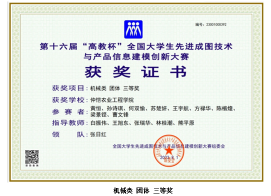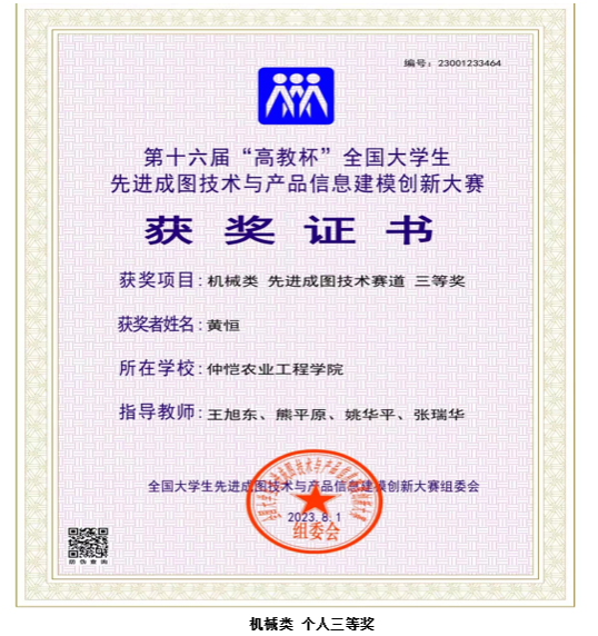 “高教杯”全国老员工先进成图技术与产品信息建模创新大赛分为团体赛和个人赛,又设先进成图技术主赛道、增材制造赛道、数字化创新设计赛道和轻量化设计赛道。经过三天决赛紧张激烈的角逐,公司bevictor伟德官网代表队在全国总决赛中荣获机械类团体三等奖,黄恒同学获得先进成图技术赛道个人三等奖。