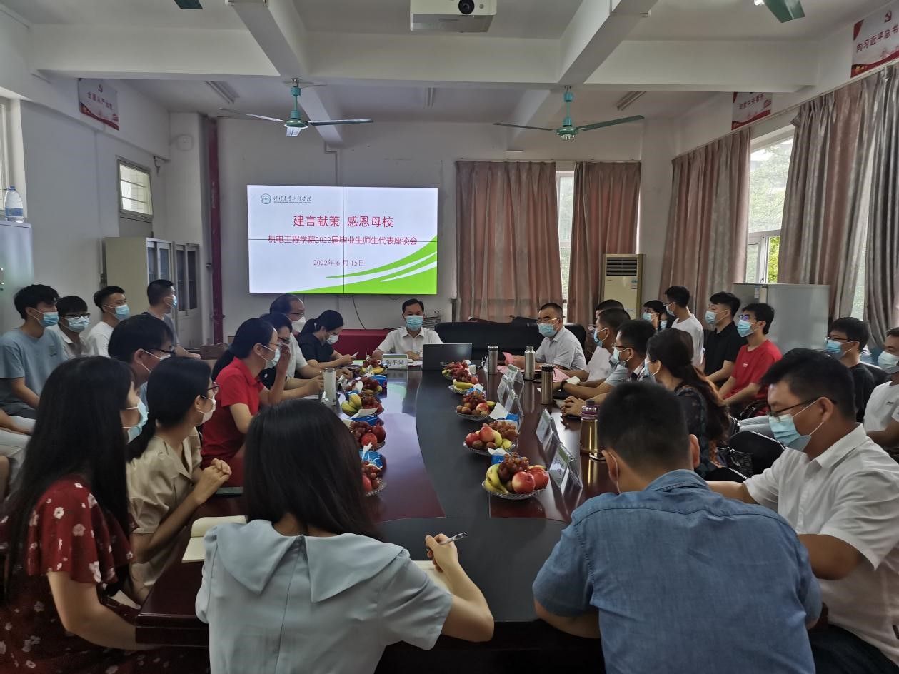 会议尾声,张平湖作了总结讲话。他感谢同学们为公司和公司的发展提出的宝贵建议,表示公司将召开专题会议进一步梳理并研究相关问题,以便更好地促进公司的发展。同时,他鼓励同学们转变认识问题的角度与观念,对自己充满信心。在就业问题上他引用习近平总书记在宜宾公司考察调研时的讲话来勉励各位同学应树立正确的价值观,保持平实之心,客观看待社会条件和个人需求,从实际出发选择工作,在实践中成长成才。他对全体毕业生作了三点寄语:一是希望同学们坚定理想信念,站稳人民立场;二是希望同学们勇于担当,善于作为;三是希望同学们锤炼品格,勤学苦练。张书记深情地对毕业生说:“希望同学们无论身处何方,相隔多久,永葆机电情怀,常回家看看,祝福同学们乘风破浪,行稳致远,繁花似锦,未来可期!”