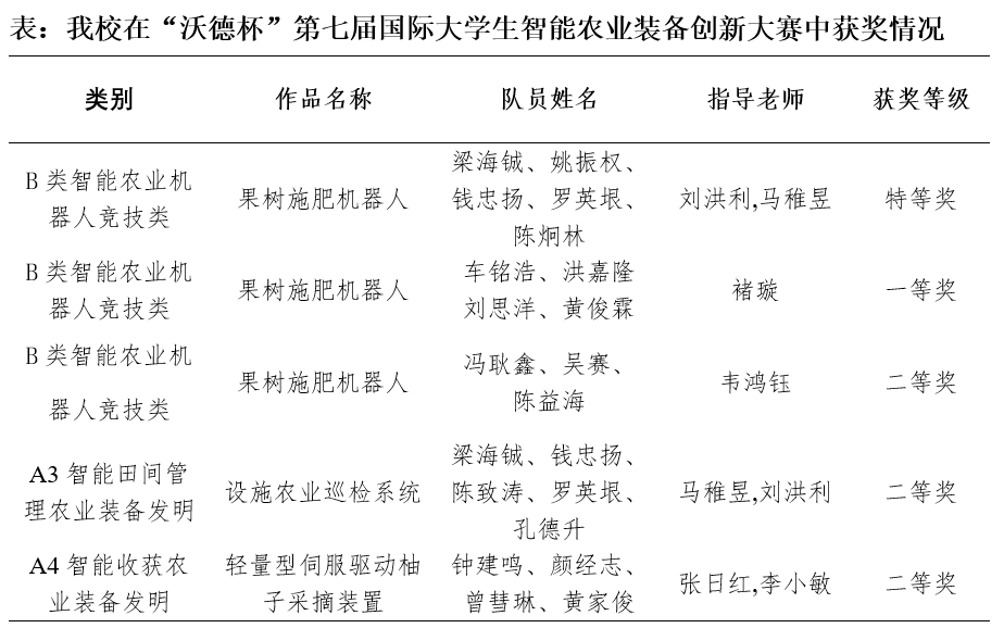 来自全国59所高校的员工,携311件创新思维强、科技含量高、市场潜力大的优秀作品进入决赛。公司bevictor伟德官网共有5件作品进入决赛,包括A类作品2件,B类作品3件。经过专家评委的复赛、决赛,公司5支参赛队伍分别荣获“沃德杯”第七届国际老员工智能农业装备创新大赛特等奖1项、一等奖1项、二等奖3项。