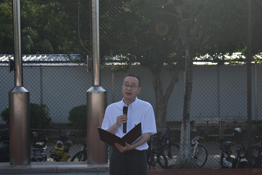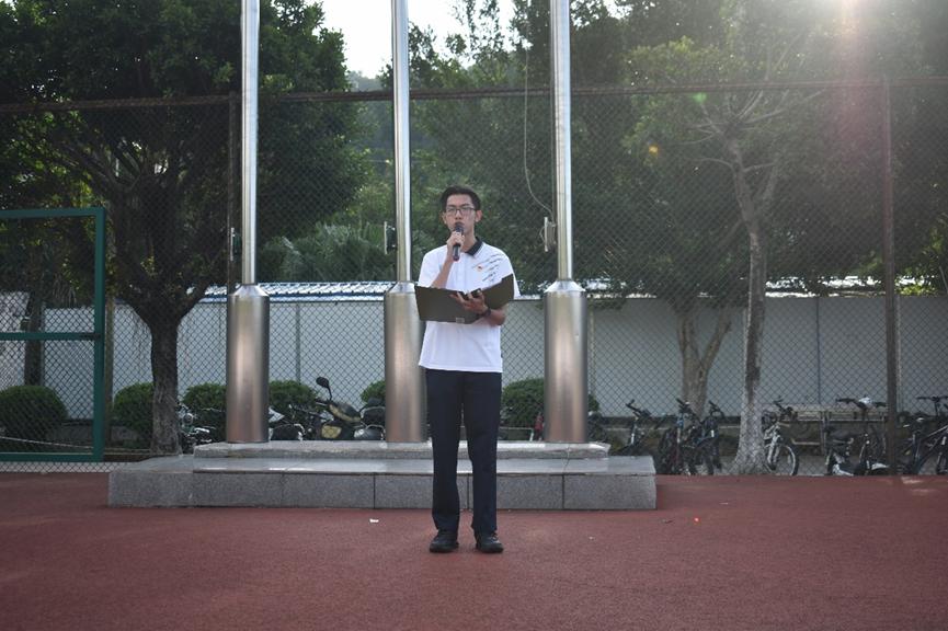 来自能源193班的员工代表郭霖威结合自己的日常学习、工作和生活作国旗下的发言,他以“青春正当时,一起向未来”为题,向在场的同学们谈了自己在党史学习中的深刻体会。他谈到,我们青年一代老员工要用自己的青春肩负起时代赋予的责任。身为新时代涉农高校的学子,身为仲恺人、机电人,我们要传承弘扬廖何精神,勇担使命。最后,他向同学们倡议,扛起“强国有我”的青春之责,做思想长河的奋楫者;树立“青春之我”的奋斗之旗,做科技创新的践行者;练就斗争路上的“真功夫”,做乡村振兴的参与者、推动者。